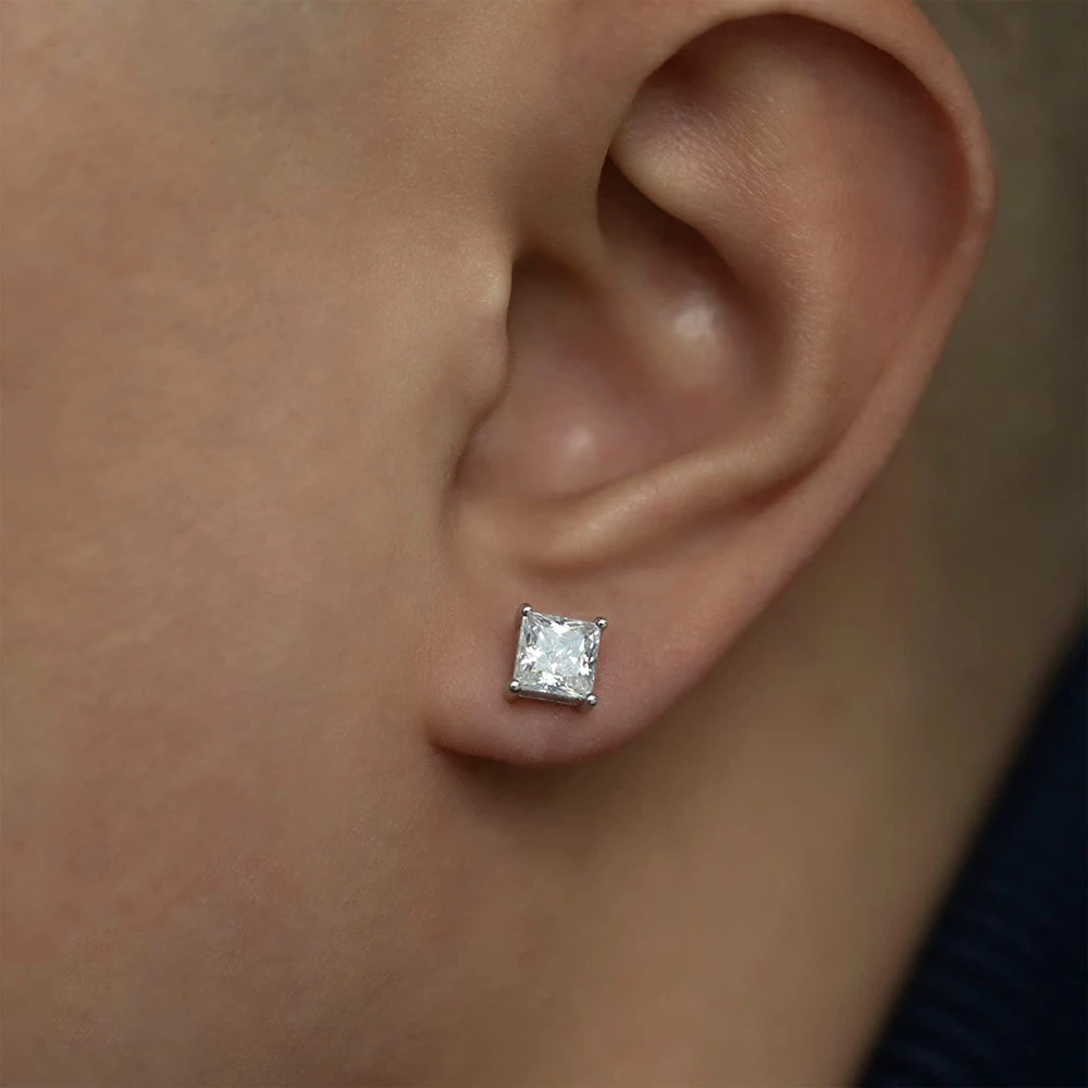 Ces boucles d'oreilles effet diamant rectangulaires offrent un rendu brillant et propre, parfait pour les hommes percés qui recherchent un bijou discret mais qui capte bien la lumière.